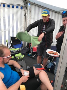 Auch mein Mann quälte sich noch einige Runden auf und ab. Nicht nur ich habe unterstützt, Salztabletten und sämtliches Essen gereicht, geredet, angefeuert, geholfen und gebangt (mein Dank gilt Christian, André, Karen und besonders Corinna 😘).