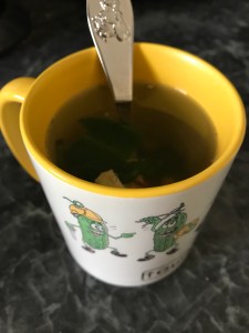 Am Sonntag, bei der Urnenbeisetzung meiner Oma (das kam auch noch obendrauf, war aber schon seit 2 Wochen bekannt) wurde ich gefragt, ob ich auf Pollen allergisch bin – es war ja alles schön gelb eingefärbt überall. Nein, das war eine dahergelaufene Erkältung, die mich voll erwischt hatte. (Protipp bei Erkältung: kleine Ingwerscheiben mit frischer Minze in gekochtem Wasser mehrere Minuten ziehen lassen – den ganzen Kram dann wieder raus aus der Tasse und mit Honig versüßen, das hilft!)